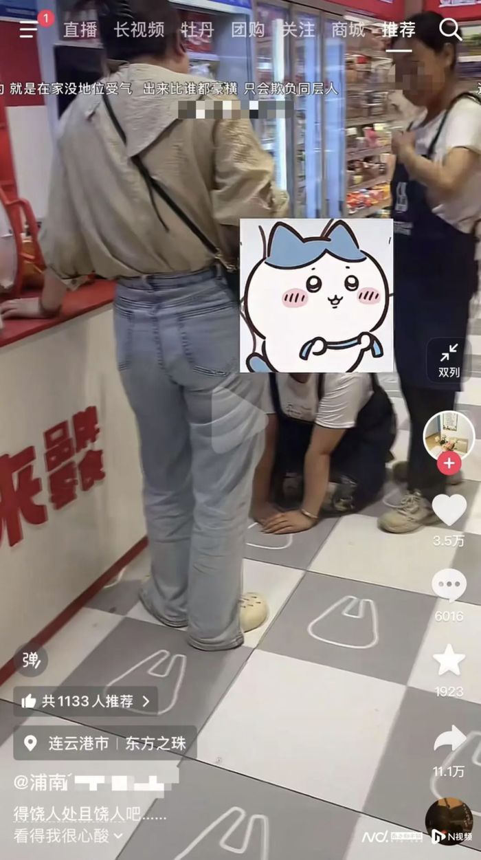 该名网友称,收银员疑似给另一名顾客插队结账,导致顾客“不依不饶”,店员下跪赔不是。