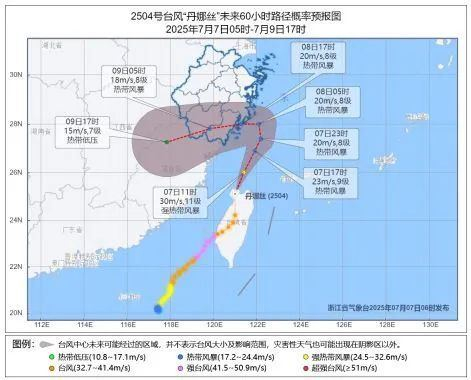 气象部门表示,由于“丹娜丝”环流尺度小、结构不对称、引导气流不强,“丹娜丝”进入东海后路径曲折复杂,先东北行再折向西南方向,还有可能在浙中南沿海回旋少动,台风登陆点和登陆时间仍存在不确定性,请大家密切关注滚动预报。
