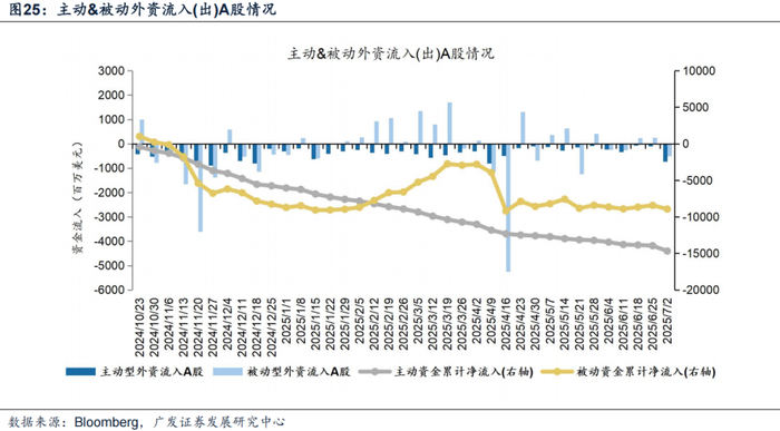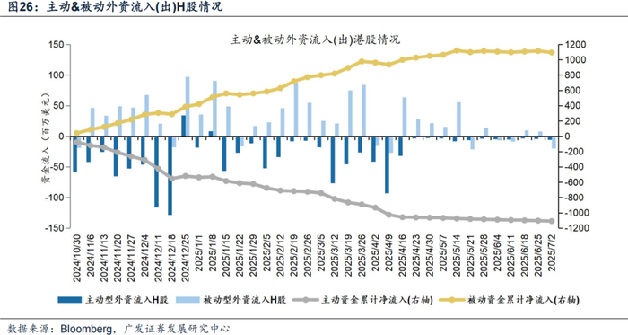 2. 外资流向方面:A、H股主动外资流出均增速,被动外资转流出