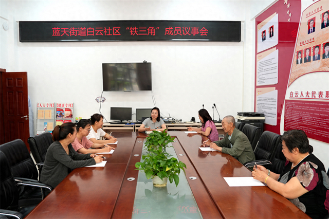 白云社区“铁三角”成员议事会现场。