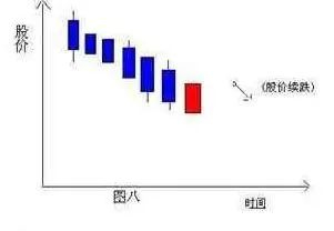 股价持续下跌,收出多跟阴线,随后出现低开高走的阳线,这明显是主力在给散户设陷阱,股价短暂停顿后还将继续下跌,此时应果断清仓。