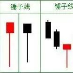 3、锤子线与上吊线相同之处实体处于整个价格区间的上端;下影线的长度至少达到实体高度的2-3倍;没有上影线,即使有上影线,其长度也极短;在快速运动后出现的锤子线或上吊线,一般需要后K线来验证。4、锤子线与上吊线区别锤子线与上吊线本身是一种图形,只是出现的位置不同而叫法不同;锤子线一般出现在股价经过一段时间的下跌,要有一定的跌幅,即是阶段循环底部,叫锤子线;上吊线出现在股价经过一段时间的上涨有一定的涨幅相对的高位,称为上吊线。在看涨的锤子线实体是白色其意义更坚挺,在看跌的上吊线实体是黑色其意义更坚挺;判断锤子线之前必定有一段下降趋势,上吊线必须出现在一段上升趋势之后;在双锤子线中,其收盘价应该一个比一个更高,在双上吊线中,其收盘价应该一个比一个更低;在大阴线后出现的锤子线或大阳线出现的上吊线,一般都需要后K线的验证才能构成反转形态。