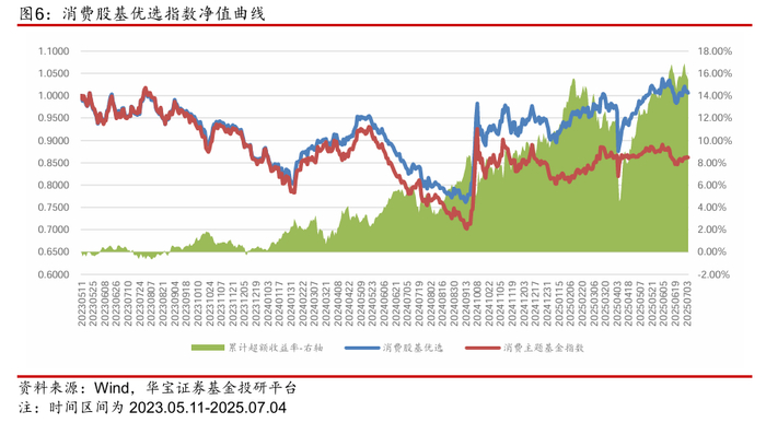 消费股基优选指数:上周收涨0.57%,成立以来累计录得15.46%的超额收益。