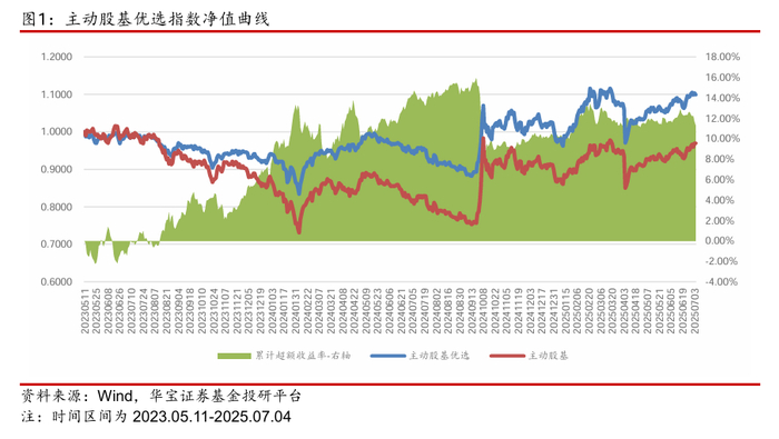 主动股基优选指数:上周收涨0.46%,成立以来累计录得11.29%的超额收益。
