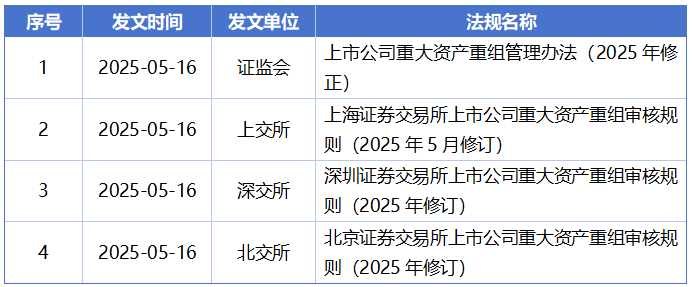 进一步深化上市公司并购重组市场改革,活跃并购重组市场,提高并购重组审核效率,2025年5月16日,证监会颁布了《上市公司重大资产重组管理办法》,沪深北交易所同步修订了《上市公司重大资产重组审核规则》。本次对重大资产重组相关规定的修订,主要包含以下6个方面: