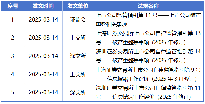 三、3月14日,细化破产重整相关事项、优化信披评价指引