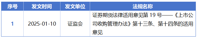 为统一投资者权益变动标准,2024年1月5日,证监会起草了《证券期货法律适用意见——<上市公司收购管理办法>第十三条、第十四条的适用意见(征求意见稿)》(以下简称《法律适用意见》),该《法律适用意见》于2025年1月10日正式发布,并于发布之日起实施。