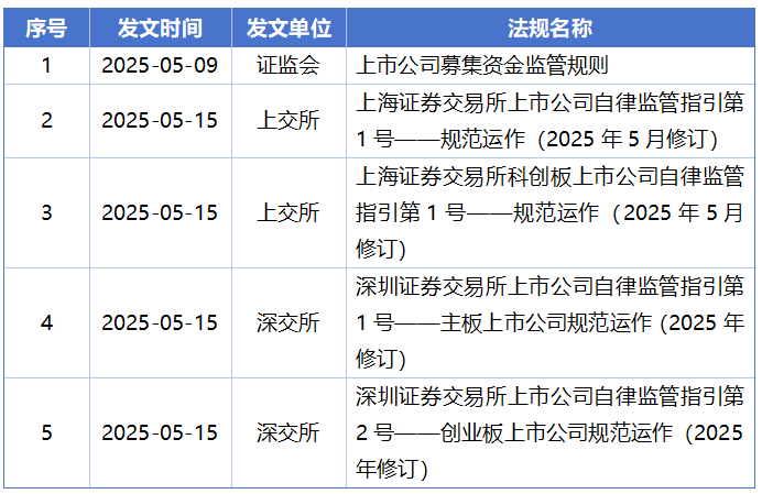 为贯彻落实新《公司法》、《国务院关于实施<中华人民共和国公司法>注册资本登记管理制度的规定》及独董制度改革,2025年3月28日,中国证监会系统梳理并修改完善证券期货制度规则。同时,沪深被交易所根据证监会的统一部署,也同步对现行有效的业务规则和业务指南进行了全面清理。