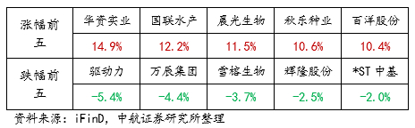 申万农林牧渔行业(2.55%),申万行业排名(7/31);
