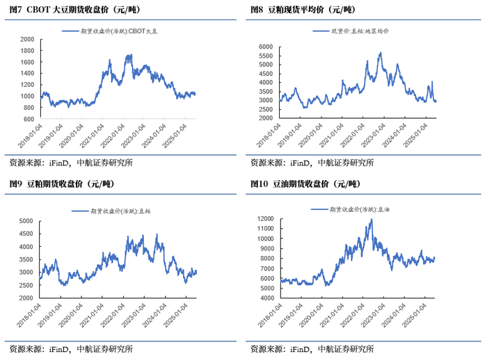 豆粕:豆粕现货平均价周环比涨0.46%,豆粕期货价格周环比涨0.61%。