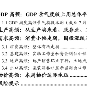 GDP高频:GDP景气度较上周总体平稳