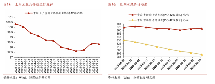 基于高频数据,可以看到近期工业品价格趋于震荡。据商务部市场运行监测系统显示,上周(2025年6月23日至29日)全国生产资料市场价格环比基本持平。