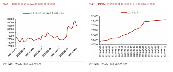 重要的是,高技术产业发展带动相关行业价格上涨。DRAM现货市场(Dynamic Random Access Memory,动态随机存取存储器)延续强势上攻格局。尽管工厂对于持续走高的价格存有疑虑,但在备货的考量下,仍陆续出手采购,促使报价再度上扬。我们认为,近期存储芯片涨价潮主要由AI算力需求与原厂战略调整共同驱动,短期内供应紧张难缓解。值得说明的是,近期成熟制程DRAM内存芯片价格上涨明显。由于主流DRAM制造商转向生产新一代产品,并将于2025年底前大幅削减DDR4(第四代双倍数据速率(Double Data Rate,简称为DDR))同步动态随机存取存储器等产量,这导致近期成熟制程DRAM价格上涨明显。