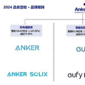安克创新聚焦智能用电、智能家居自动化、智能影音等三大产业方向,现已形成数码充电、消费级储能、智能清洁、智能安防、智能音频、智能投影等核心业务聚焦智能用电、智能家居自动化、智能影音等三大矩阵。2024年,充电储能类产品创收126.67亿元,占比51.26%;智能创新类产品创收63.36亿元,占比25.64%;智能影音类创收56.92亿元,占比23.04%。