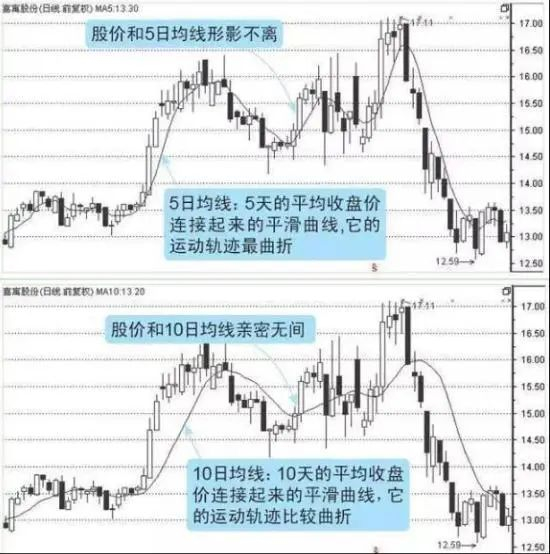 短期均线的代表是下面图1和图2中所显示的5日均线和10日均线。如何利用短期均线选股呢?我们认为有如下几点值得新手借鉴。