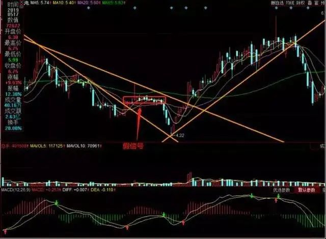 看到这里我建议你先好好理解一下上面的走势运行的原理,市场当然不会可能总是那么完美的走成这样,有时候它也会有假的信号出来。下面就解释一个假信号的例子。