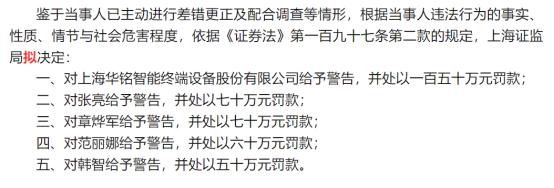 其实在此之前,上海证监局和深交所就已分别对华铭智能及相关负责人出具了警示函和通报批评的处罚决定,这次是在对公司立案调查后,就此涉嫌披露违法违规行为,给予了警告及罚款。