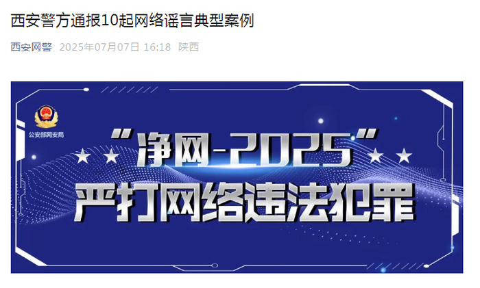 今天(7月7日),西安警方通报10起网络谣言典型案例。以下为详情↓↓↓