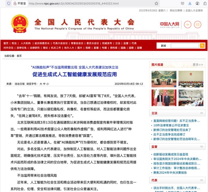 随着“AI换脸拟声”乱象日益突出,社会各界呼吁对此加强监管和治理的呼声也越来越高,今年全国两会期间,多名全国人大代表就纷纷建议,加强治理AI换脸拟声。