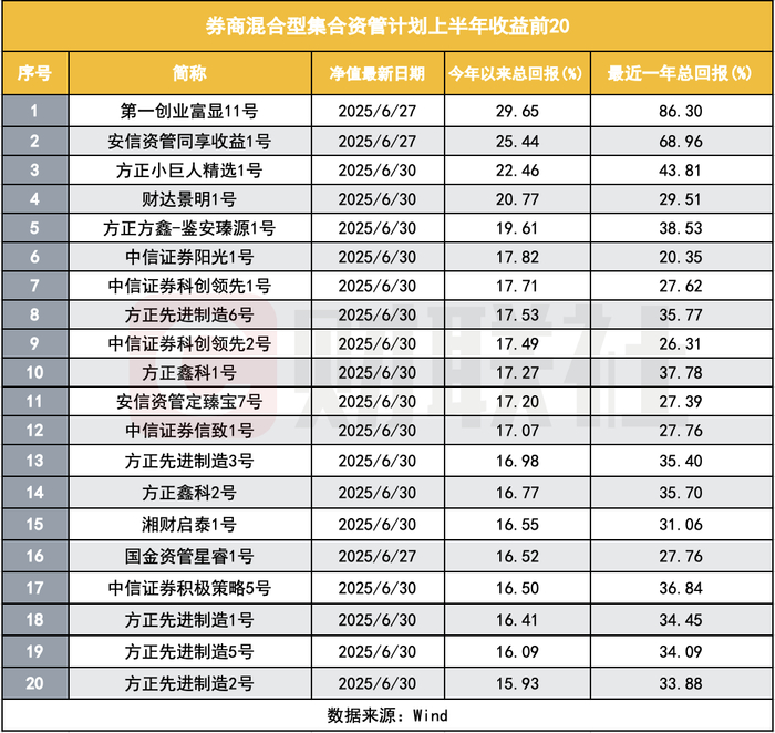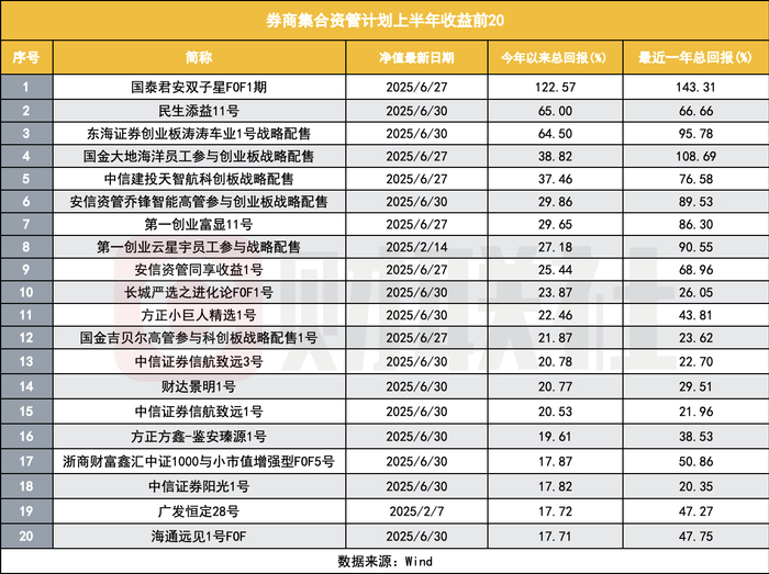 2025年上半年券商资管收益榜单出炉,有FOF收益翻番,战略配售成收益引擎