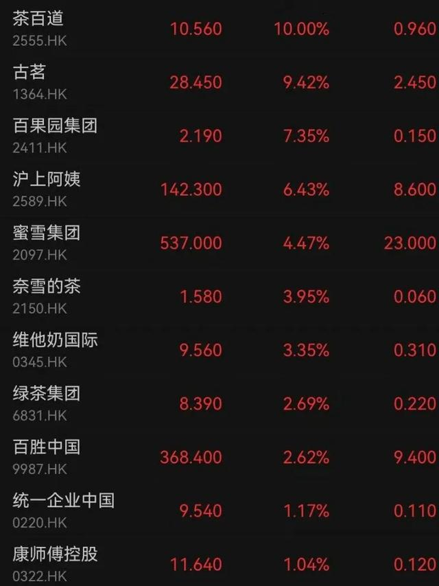受到大量订单的刺激,7月7日,茶饮股全线高开,茶百道一度大涨15%。