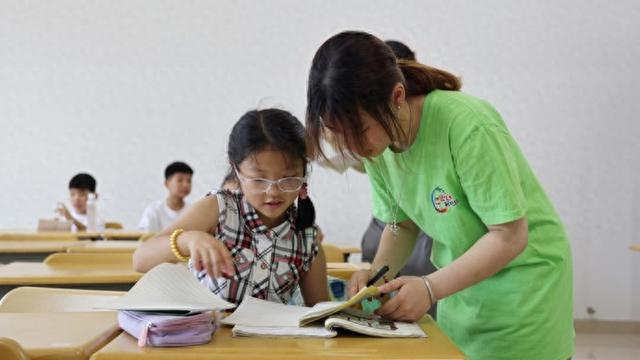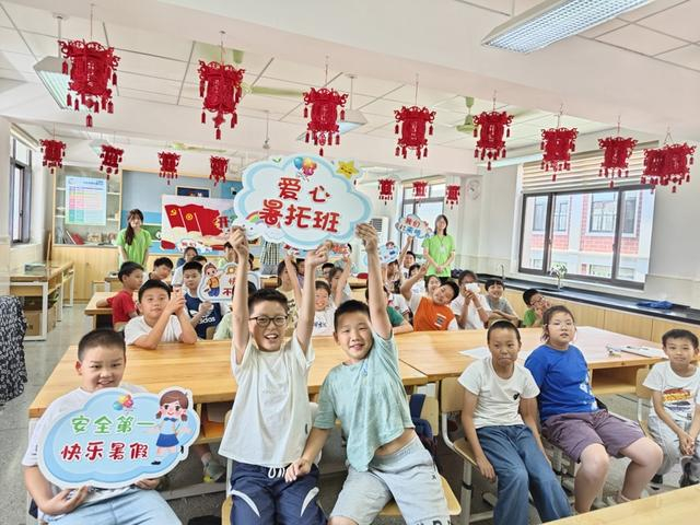 除了新业态新就业群体子女专属暑托班外,当天,作为上海市为民办实事项目的爱心暑托班也如期开班。今年,金山区在11个街镇(园区)设立了26个暑托班,涵盖学校和社区,分成两期。其中,朱泾镇开设3个办班点,分布在朱泾小学与朱泾二小两个点位,根据学生的年龄分为低年级班和高年级班,安排了14名“金种子”大学生志愿者,协助暑托班开展课业辅导、兴趣拓展等活动,让孩子们度过一个充实、快乐的暑假。