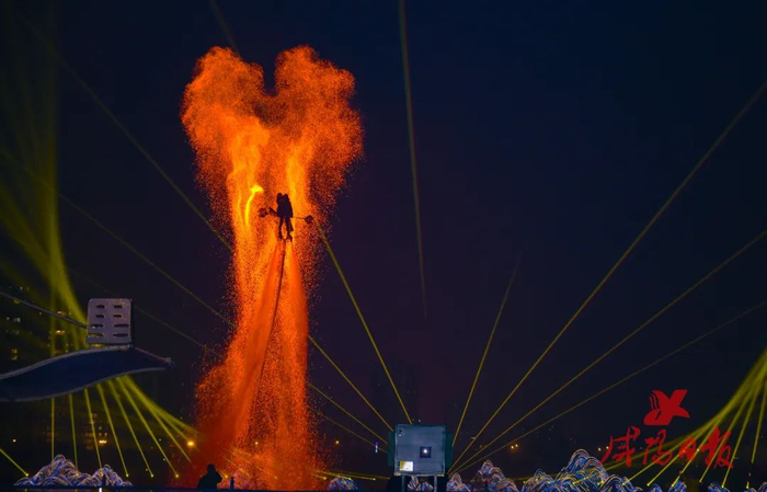 飞人火壶表演。(资料图)咸阳融媒全媒体记者 韩国章 何城城 摄