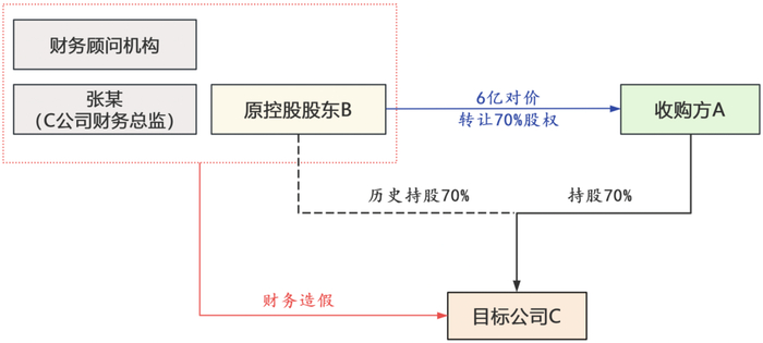 实施主体:欺诈行为由B主导。A还认为,目标公司财务总监张某、协助交易的财务顾问机构亦协助B实施造假。