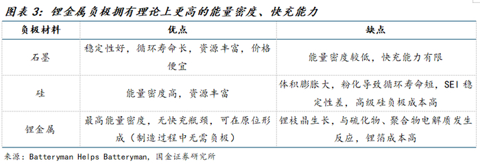 一、趋势:锂金属负极为负极长期迭代路线,锂枝晶问题待突破