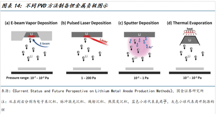 3)气相沉积法:利用物理气相沉积(PVD)技术在集流体上沉积薄层锂金属,其中蒸发镀最具备前景。