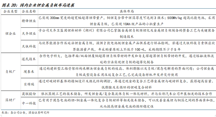国金电新姚遥丨锂金属负极:负极长期方向,关注各工艺领先企业——固态电池深度
