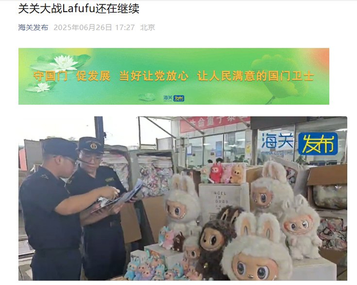 据通报,单次走私规模都数十个到上万个不等,走私产品类型涵盖高仿玩偶、盲盒、发夹等,违规申报、私自夹带等手段也层出不穷。就连海关发布公众号都自我调侃,这是海关“大战”LAFUFU。