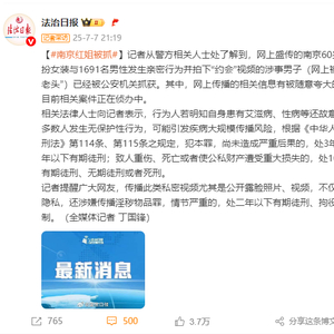 记者从警方相关人士处了解到,网上盛传的南京60岁大叔男扮女装与1691名男性发生亲密行为并拍下“约会”视频的涉事男子(网上被称为“红老头”“南京红姐”)已经被公安机关抓获。其中,网上传播的相关信息有被随意夸大的成分,目前相关案件正在侦办中。