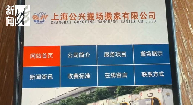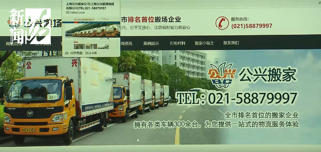 记者注意到,王女士选择的这家名为"上海公兴搬场搬家有限公司",其使用的品牌标识与大家熟知的"公兴搬场"一模一样。网站上有公司简介、服务项目、资费等,甚至还有提示注意防范网络虚假搬家公司的新闻。