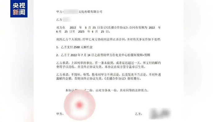 郭栋佳:合同的订立要遵循平等自愿原则,仅公司可以任意解约,主播不得解约,一方有天价违约金而另外一方没有限制,这些都属于霸王条款,在法律上很可能是无效的。