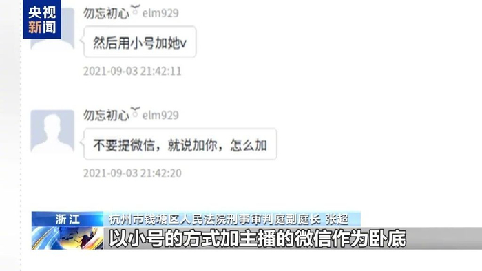 杭州市钱塘区人民法院刑事审判庭副庭长张超:在主播直播过程中,被告人徐某安排自己的同案人员,以小号的方式加主播的微信作为卧底,向主播打探直播公司的信息,或者私下向主播发送1314、520这种数额的红包,如果主播说出公司的信息或者私下接收打赏,就以此作为主播违约的条件向主播要求索赔。或者主播因无直播收益到其他平台直播,被告人在发现主播在其他平台直播的情况之后,不仅不制止,而且故意纵容以收集主播违约的证据。有主播直播一个月,但是只拿到了40元钱工资。