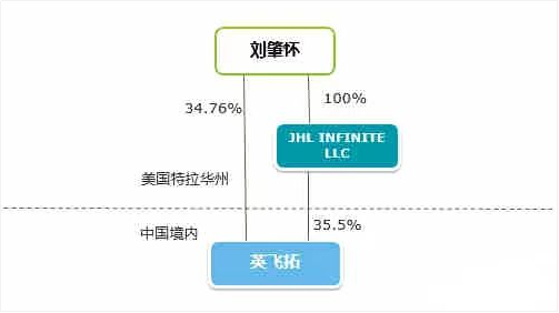 首先,在境外家族信托成立之前,刘肇怀先生直接持有英飞拓34.76%的股份,并通过其全资持有的注册于美国特拉华州的JHL INFINITELLC间接持有英飞拓35.5%的股份,该控股结构如下图所示: