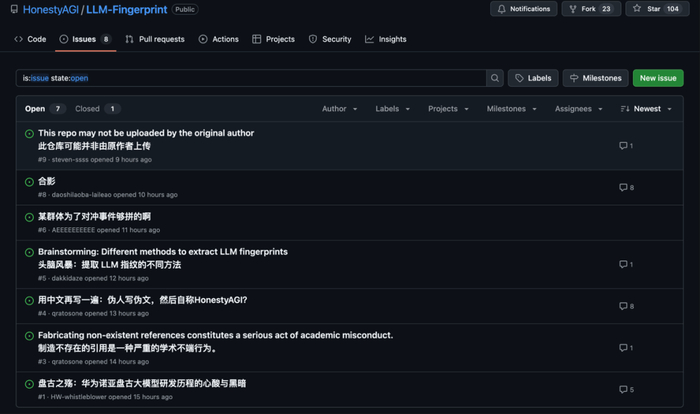 这项研究一经发布便引发了不少的争议,有人认为它通过种种证据已经算是实锤了盘古大模型抄袭Qwen;但另一方面,也有人对“指纹”方法的专业性提出了质疑,更是在项目的Issues中产生了对峙之势。