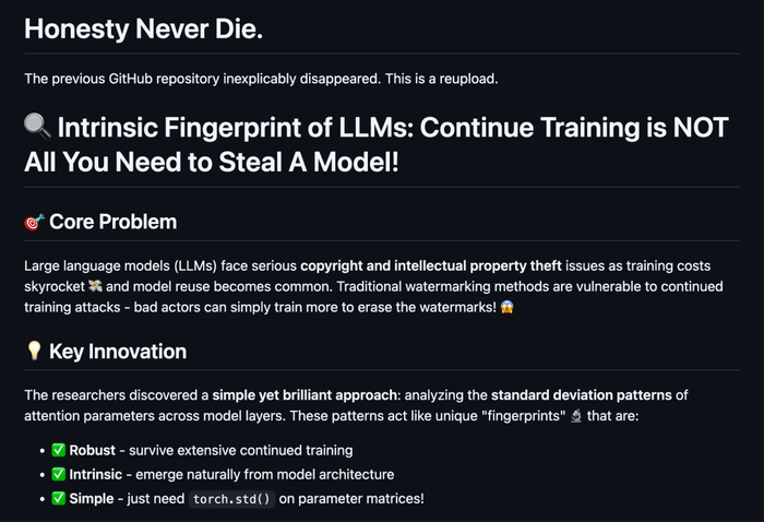 1、HonestAGI团队发布一项名为“模型指纹”的研究欲证明华为盘古大模型抄袭阿里Qwen,但由于方法过于简单粗暴、团队和参考文献存在造假嫌疑被质疑其真实性。