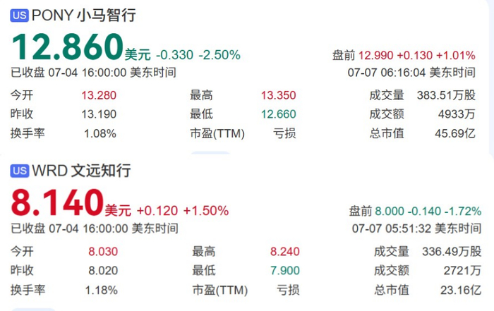 截至2024年底,小马智行和文远知行均已拿下多轮融资,两者的估值都在50亿美元左右。随后,双方在同一天向美国证券交易委员会递交招股书,最终文远知行成功摘获“Robotaxi第一股”,一个月后,小马智行也成功上市。