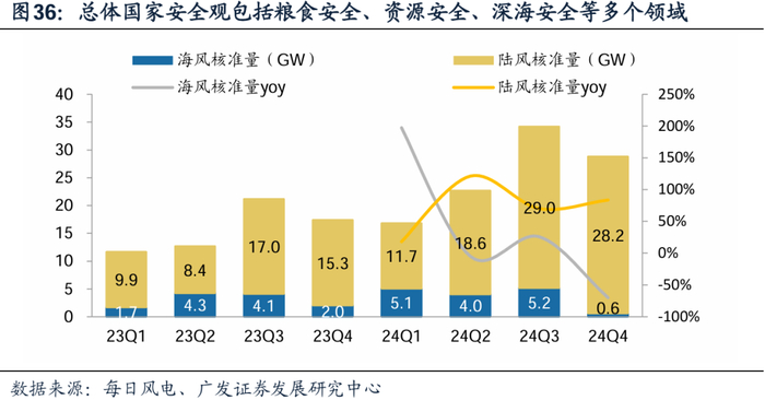 海上风电核准、建设提速。根据每日风电,2024年,全国海上风电核准量分别为15GW,同比+23%。根据能源发展网,25Q1国内海上风电中标量达1.15GW,同比增长115.62%。海上风电核准工程装备供给趋充足,风电建安成本下降。根据国际船舶网,截至2025年1月初,全球风电安装船现役船队数量飙升至103艘,供给大幅扩张,过去风电安装船紧缺的情况显著缓和,风电建安服务商租船成本下降,如华电科工25M3公告对“华电博强中集巨龙01”风机安装平台租赁合同中的租赁单价、租期等条款进行变更,租赁单价下降50%。