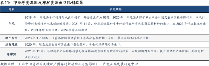 逆全球化背景下,各国更加重视依托自身市场形成的初始规模来参与国际竞争,且为了建设增强经济自主性和安全性,需加强自循环、建设国内产业链来减少对外部市场依赖。逆全球化提速背景下,资源国工业体系建设需求有望放量。以矿业领域为例,为发展矿产资源产业链、增加就业机会、提高高附加值产品的比重和出口收入,印尼、津巴布韦、坦桑尼亚采取矿资源出口限制措施。
