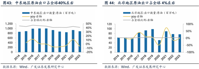 中东北非地区坐拥丰富的石油、天然气等能源资源,凭借能源产业积累了雄厚的资金。据国际能源署(IEA)数据,中东北非石油储量占全球近一半,天然气储量占比约40%。根据Wind,中东北非地区原油出口占比约45%。长期稳定的能源出口带来政府财政盈余,政府得以投入大量资金开展基建及工业产能建设项目。