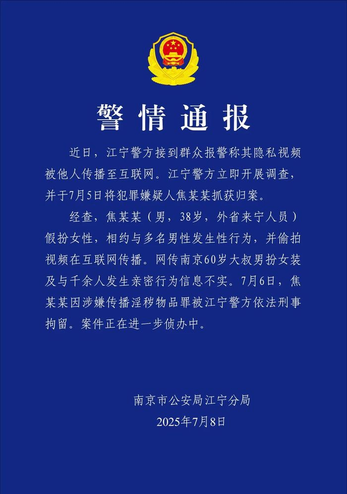60岁大叔扮女装与千余人发生亲密行为?警方通报