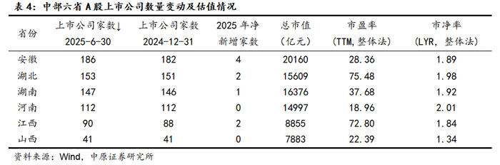 上市公司情况:6月份,全国A股上市公司净新增7家,上半年累计净增37家,江苏、浙江、广东、安徽四省居前。截至6月末,河南共有A、H上市公司138家,A股112家、H股32家,全国31个省份中排名维持在第12位和第9位不变;河南省A股总市值14996.76亿元,环比增长4.35%,规模排名维持居全国第13位,居中部六省第4位;期末市盈率(TTM,整体法)18.96倍、市净率(LYR,整体法)2.01倍。