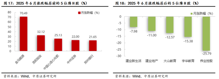 6月,豫H股表现居前的公司有金马能源(70.49%)、洛阳钼业(32.12%)、中国心连心化肥(25.13%)等,居后的公司有伟业控股(-25.79%)、宇华教育(-15.38%)、大山教育(-15.38%)等。