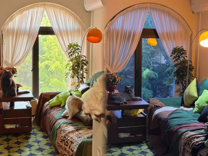 她开始珍惜这样的早晨。于是,她久违地早起、做早饭,在此之前,苏娜已经很久没有吃过早饭了。家里的宠物们也很喜欢这个新家,树影之下,苏娜跟家里的小狗抢垫子,等小猫在她身上踩过来踩过去。最近,她时常会感慨,「自己活得像个人了」,自从拥有树景房之后,生活里的四季重新变得分明,等屋外的树从光秃秃的枝干慢慢变绿、变黄,这让她能够感觉到时间的流动,那意味着从绵延不尽的工作里抽离出来,只专注于自己感受的人生。