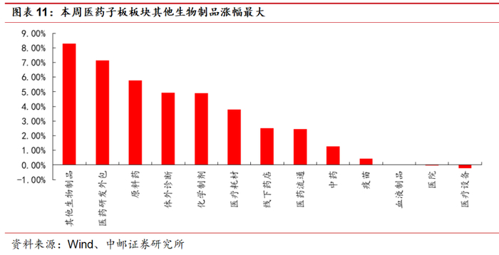 一周观点:本周医药生物上涨3.64%,其他生物制品涨幅最大