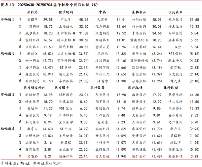 本周创新药板块继续走强,阿斯利康与Summit拟BD带来的板块热度仍在持续,我们坚定看好后续行情。年初至今创新药的大行情一方面是产业层面经过近十年积累于今年开始结硕果,体现在国际大会优质临床数据以及频繁发生的BD出海,也组成25H1股价的核心催化,另一方面资金面在板块历经四年深度回调之后见底回暖,存量市场背景下创新药重新获得资金青睐,以药基为首的公募对创新药板块配置持续提升。后市观点:从以上两个角度看下半年走势,我们认为短期震荡属正常,仍坚定看好2-3年维度的创新药行情。首先是出海,较多优质项目BD虽已有一定市场预期,但仍存在落地超预期的可能,且海外估值并未泡沫化,出海也已形成正向循环,未来全球看国内创新药比例仍有提升空间。其次资金面目前宽基对创新药板块的配置远未见顶,且外资对港股创新药的配置也有提升空间。6月16日,国家医保局召开《2025年国家医保及商保创新药目录调整工作方案》征求意见座谈会,支付端有望迎来重要变革。选股思路:1、出海已落地,静待临床催化以及上市商业化标的:科伦博泰生物、康方生物、三生制药;2、出海待落地、临床数据竞争力强:信达生物、诺诚健华、泽璟制药、益方生物、迈威生物、迪哲医药;3)爆款单品弹性标的;4)重估Pharma。