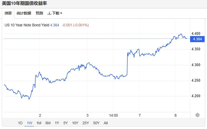 美债收益率走高,基准的10年期美债收益率收报4.385%,对利率更加敏感的2年期美债收益率收报3.897%。